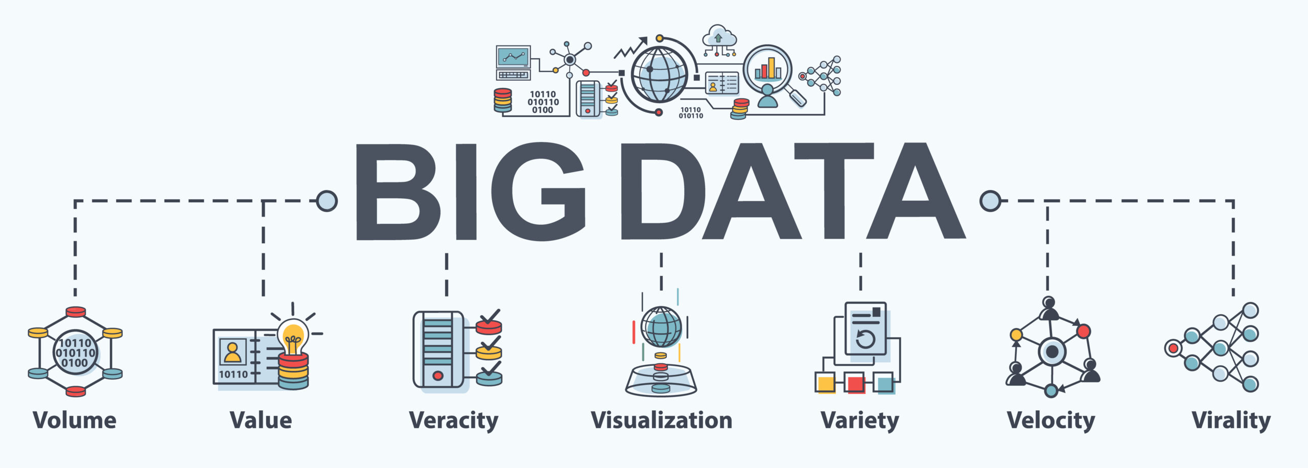 - Volume: The first characteristic that defines Big Data is its sheer volume. Organizations are dealing with vast amounts of data, ranging from terabytes to petabytes and beyond. This influx is driven by various sources such as social media, IoT devices, sensors, and transactional systems. Managing and analyzing this massive volume of data is a critical challenge that requires advanced tools and technologies.